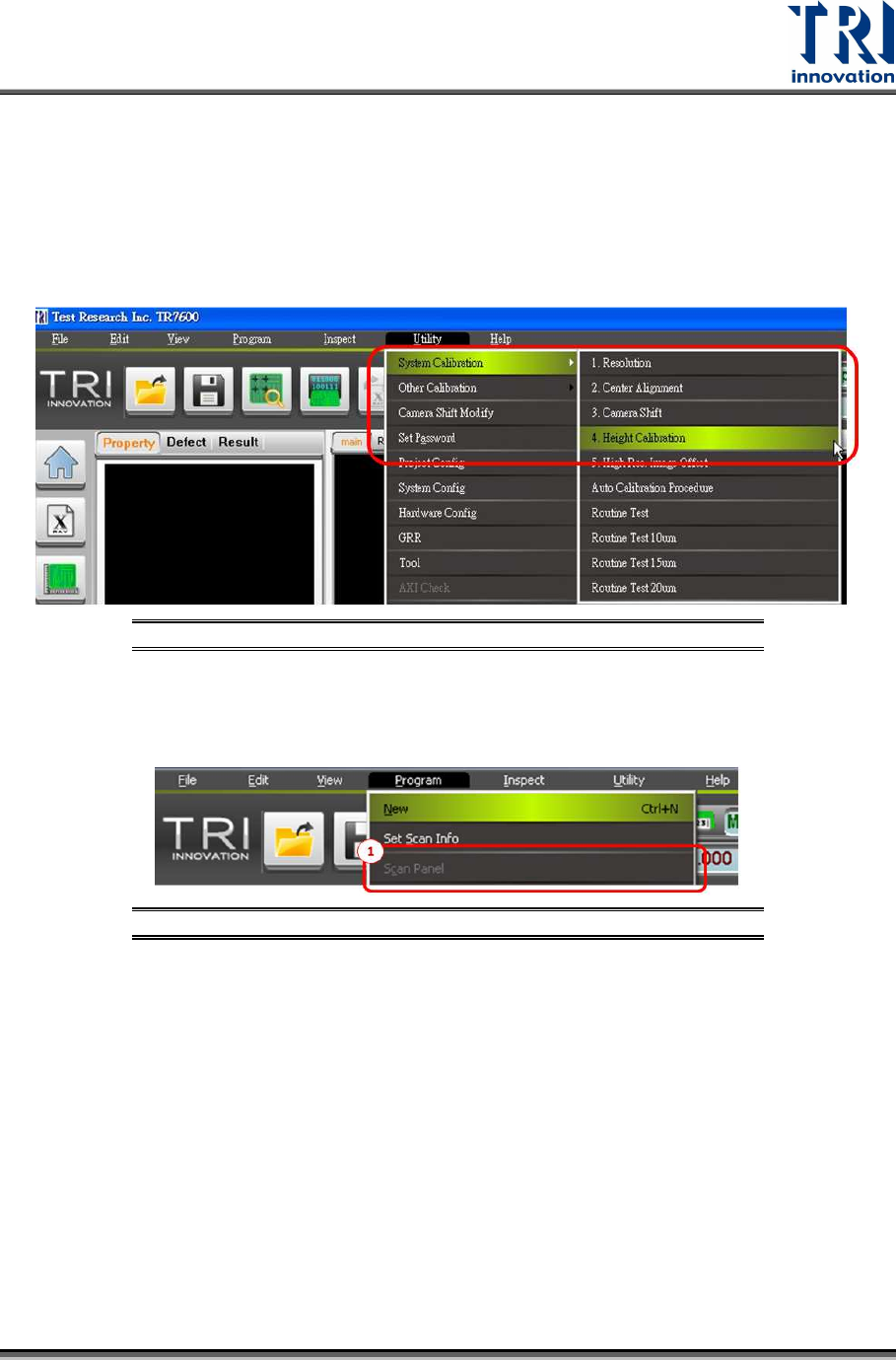 Test Research, Inc. TR7600 SIII Ser ies User G uide – Cam era Calibr ation 21 2.4 Height C alibration Note: Generally, this calibration is not required. Please check with TRI FAEs before performing this calibration. With…