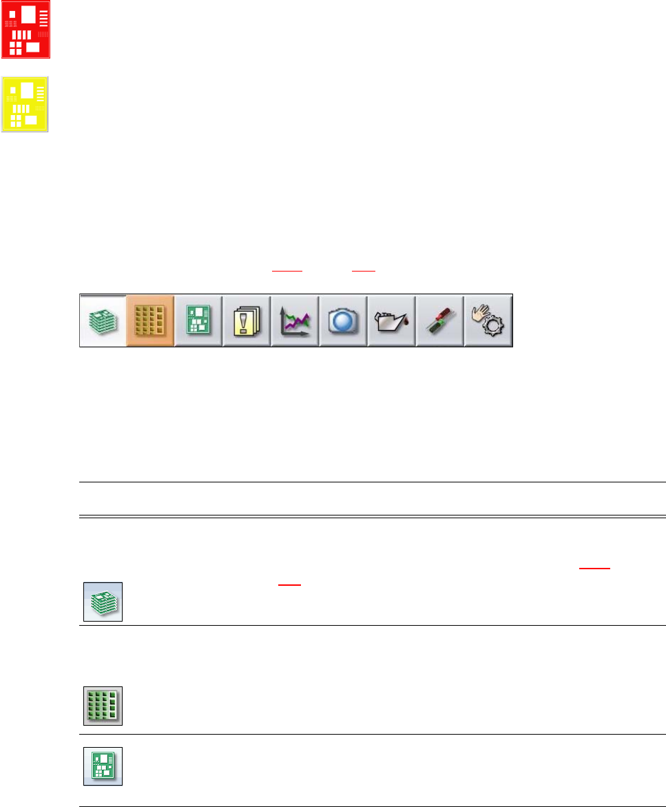 Większość widoków, wywoływanych za pomocą paska symboli (patrz rozdział 5.5.3, strona 240),
