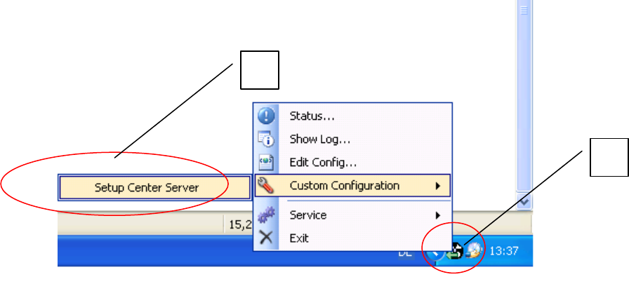 In the taskbar select icon (1) and in the context menu open Custom Configuration => Setup