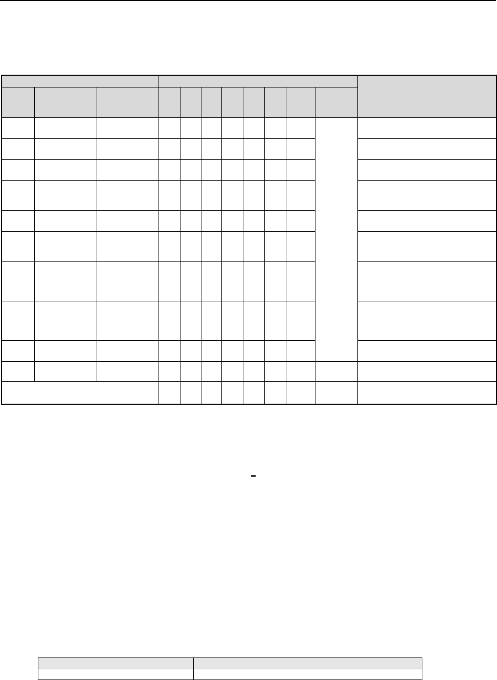 of components as shown in the table below.