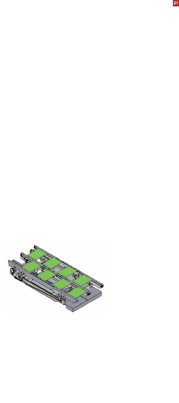 PCB 传送导轨 单传送导轨 单传送导轨 在单传送导轨中, PCB 板一块 接一块地送入贴片机内并停留 在传送导轨轨道上。 传送导轨原理 当电路板抵达贴装区后,它会 开始逐渐减速。一旦电路板抵 达了目标位置,传送导轨的皮 带将停止传送,板子从下方被 向上夹紧。随后立即启动贴装 流程。 PCB 板的移动和固定 始终受到监测。 传送导轨边缘的位置 通过电动自动宽度调整,传送 导轨可以很容易地设定到与不 同的 PCB 板宽度相匹配。传送 导轨…