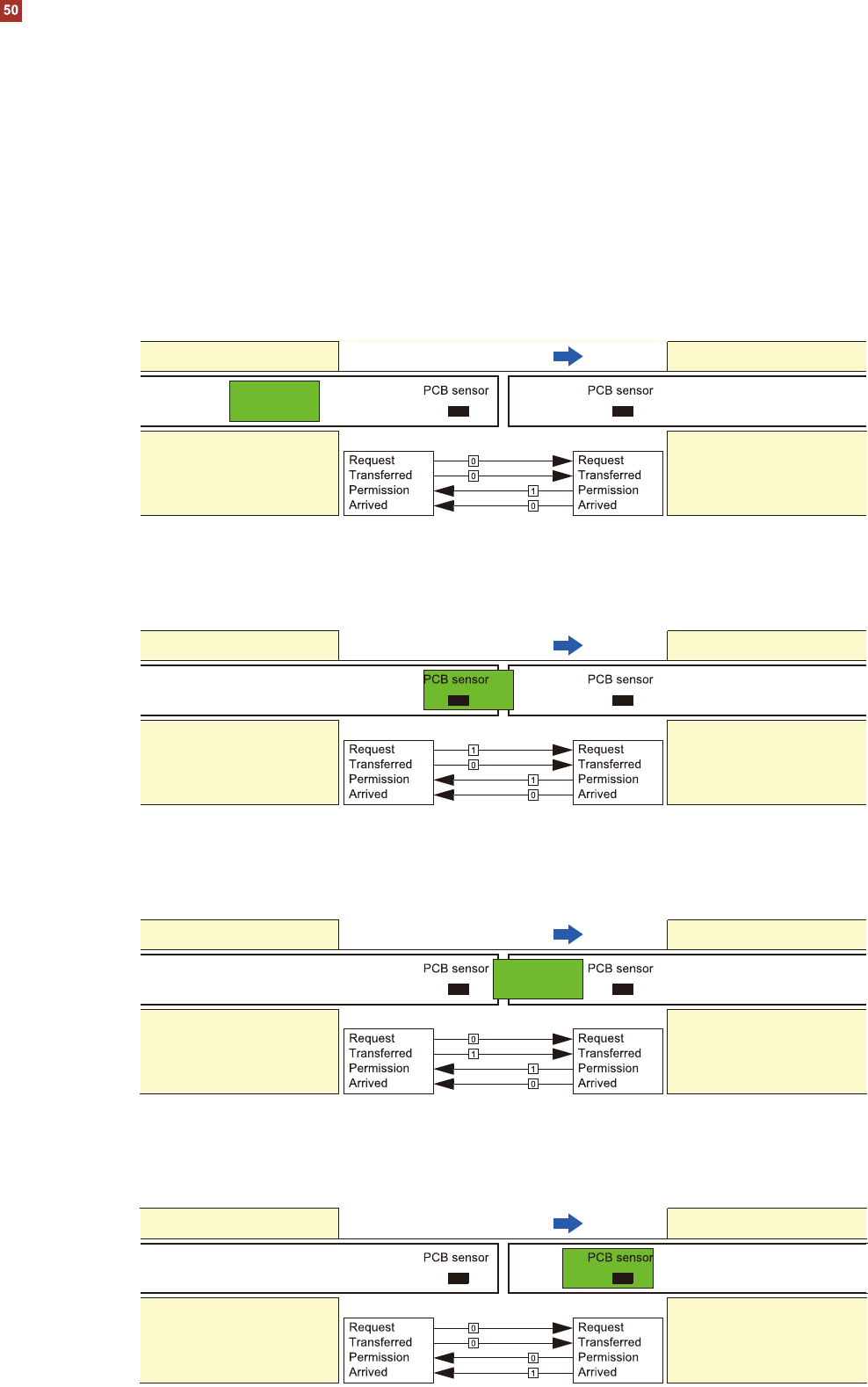 要开始传送下一块PCB,两个信号必须为“0”至少50毫秒。