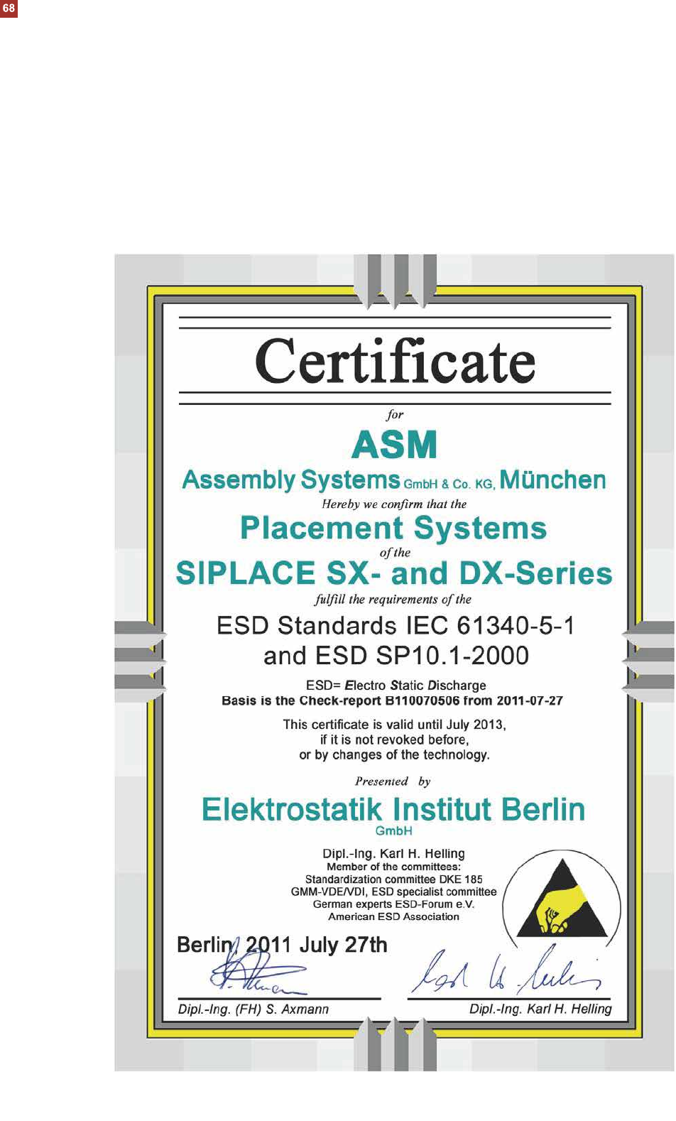 SIPLACE DX 系列的 ESD 证书