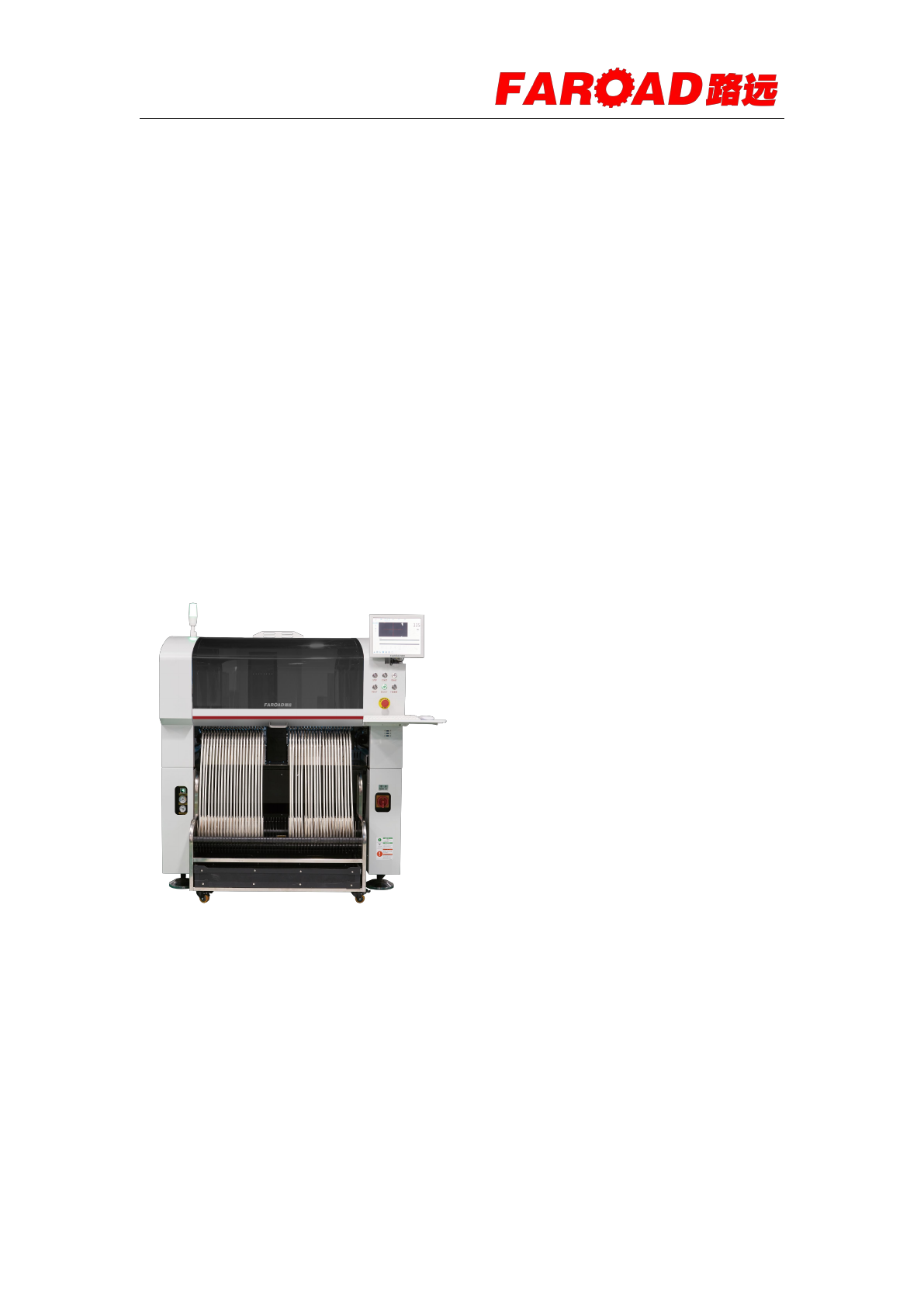 深圳市路远智能装备有限公司 深圳市宝安区沙井镇黄埔路 52 号路远科技园 服务电话: 1581182 6332 3/1 Faroad Multi-function Mounter Information Book 1. Product Information Brand: F AROAD Name: Multifunctional placem ent machine Model: CPM-F3 Place of Origin: She…