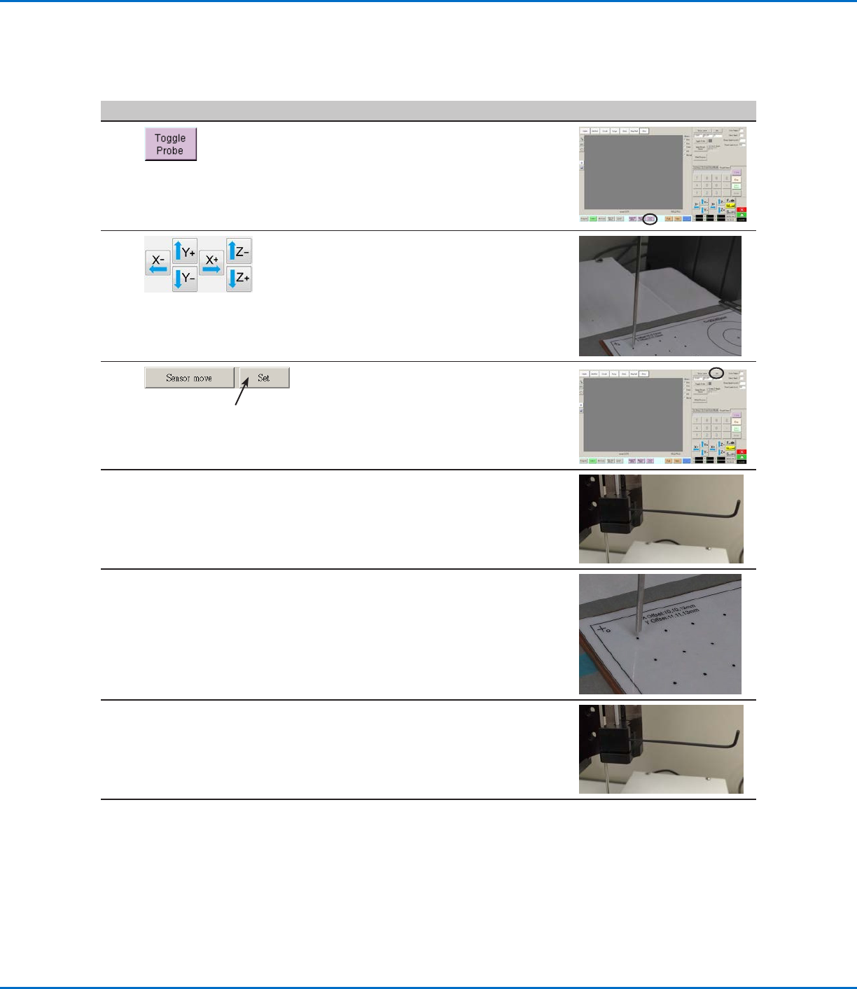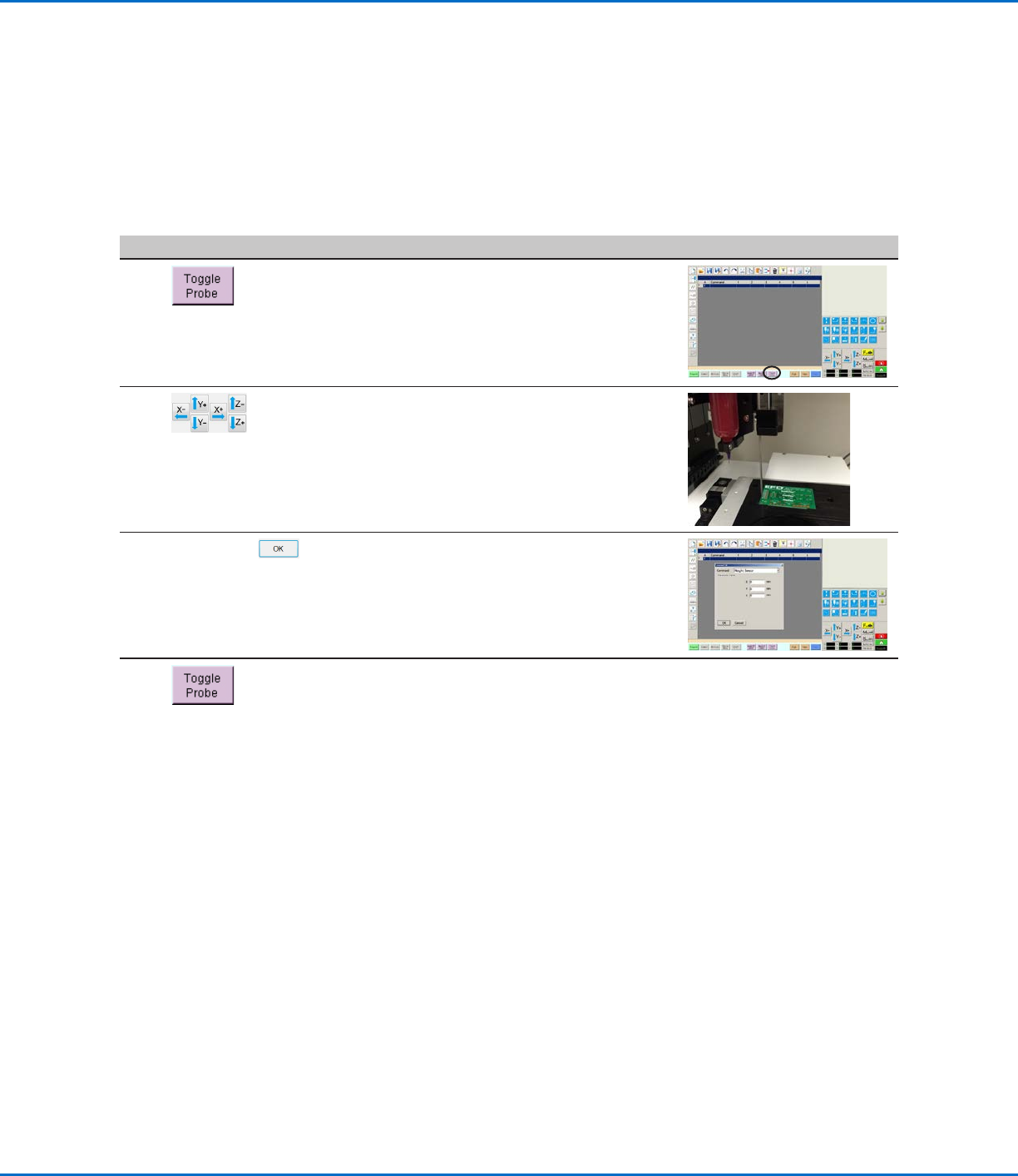 EV系列自动点胶系统 www.nordsonefd.com/cn china@nordsonefd.com +86 (21) 3866 9006 诺信 EFD 在全球范围内销售专业点胶系统并提供技术支持服务 112 # # 点击 点击 操作步骤 操作步骤 基准图像 基准图像 9 · 点击“切换探针”收回探针。 10 > > · 点击“初始高度检测”,然后点击 “确认”,捕捉Z轴高度。 高度传感器探针接触到工件表面,然后将显 …