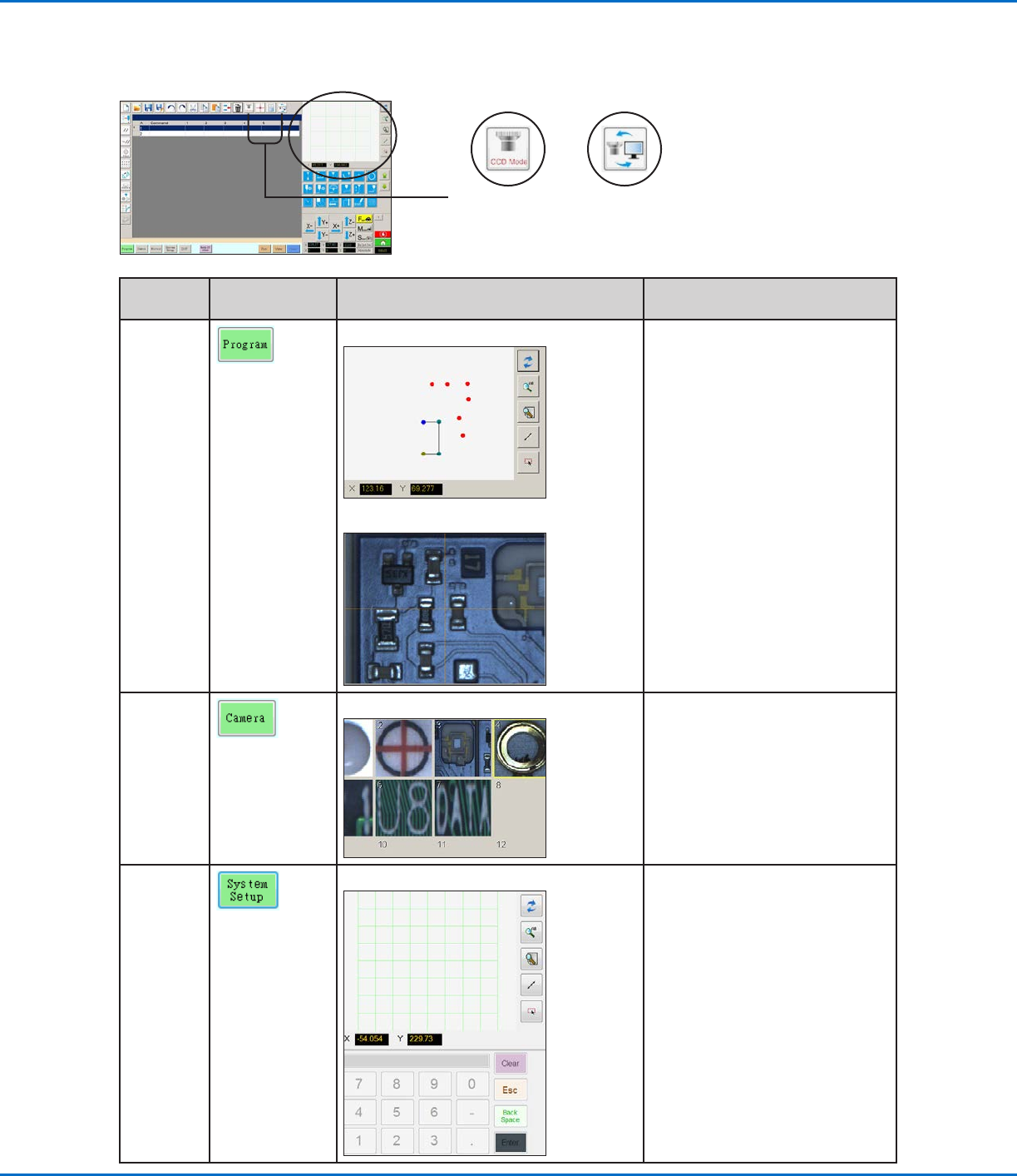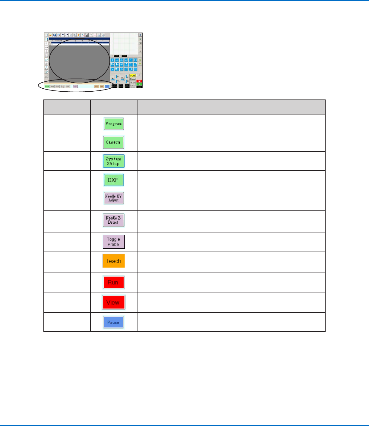 EV系列自动点胶系统 www.nordsonefd.com/cn china@nordsonefd.com +86 (21) 3866 9006 诺信 EFD 在全球范围内销售专业点胶系统并提供技术支持服务 29 主视图屏幕和标签栏 主视图屏幕和标签栏 “主视图屏幕”根据所选择的具体标签页而有所不同。所有标签页均始终可见。 标签页名称 标签页名称 选中后的标签页 选中后的标签页 颜色 颜色 功能 功能 程序 显示命令视图;用于创建程序 …