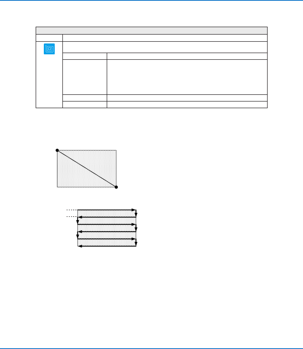 此命令使针头沿一个直角、螺旋形路径从矩形外面移动到中心,从而填充设定区域。在输入一个填充区域矩形(由外向内)命令后,