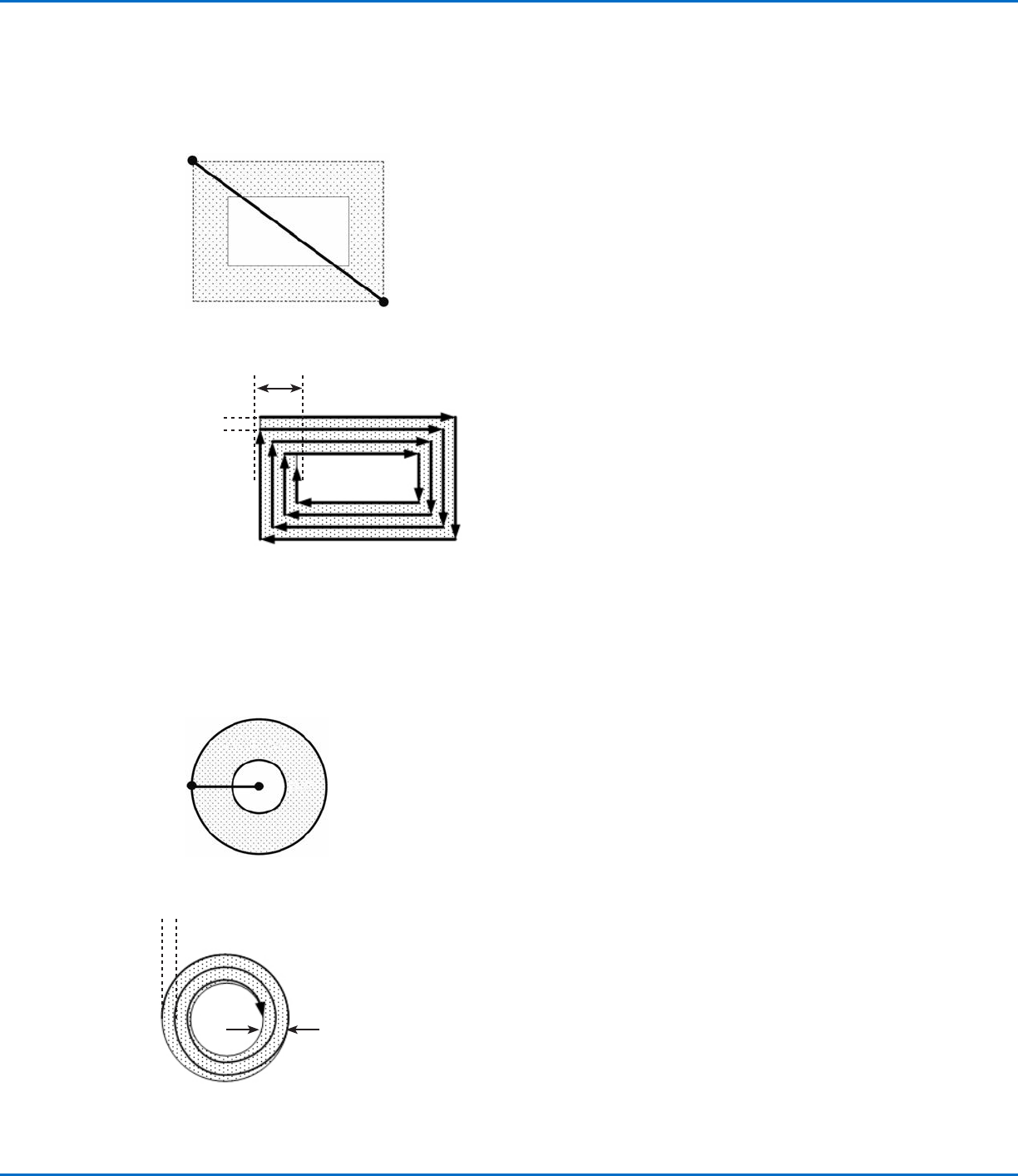 此命令使针头沿一个直角、螺旋形路径从矩形外面移动到中心,从而完成对一个矩形环区域的填充。在输入一个“填充区域矩形环”