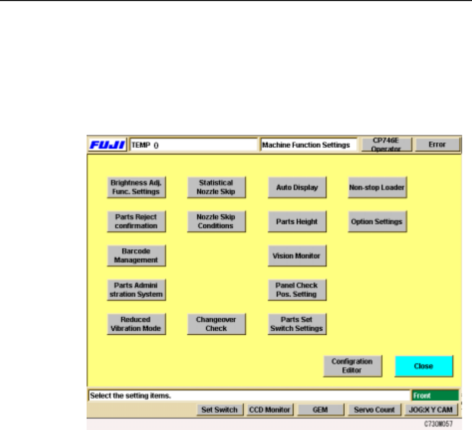 Select the [Maintenance] - [Configuration] - [Machine Function Settings] commands