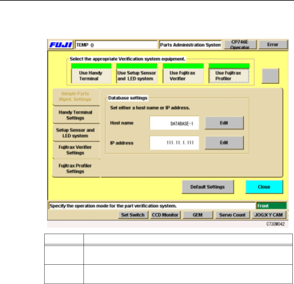 Host name This button is used to set the Fujitrax-Profiler host name. Specify either a