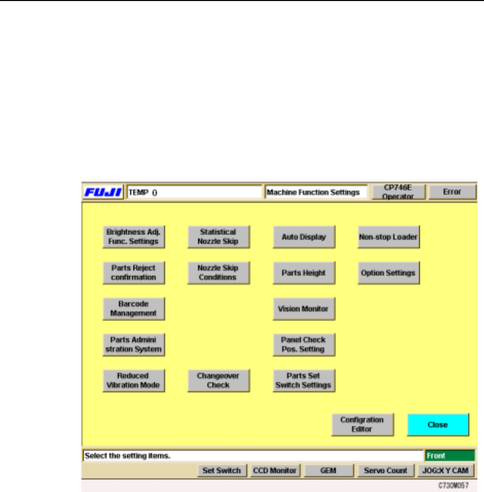 Select the [Maintenance] - [Configuration] - [Machine Function Settings] commands
