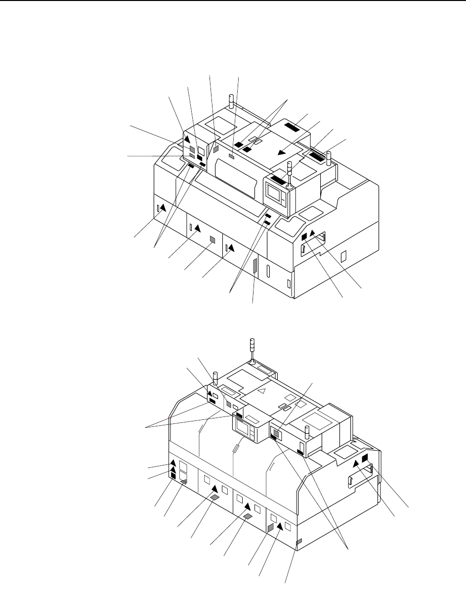 located on the machine at the positions indicated in the figure below.