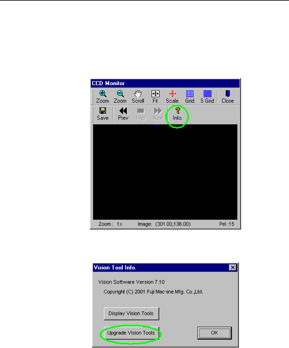3 Press the [Upgrade Vision Tools] button at the [Vision Tool Info.] dialog box.