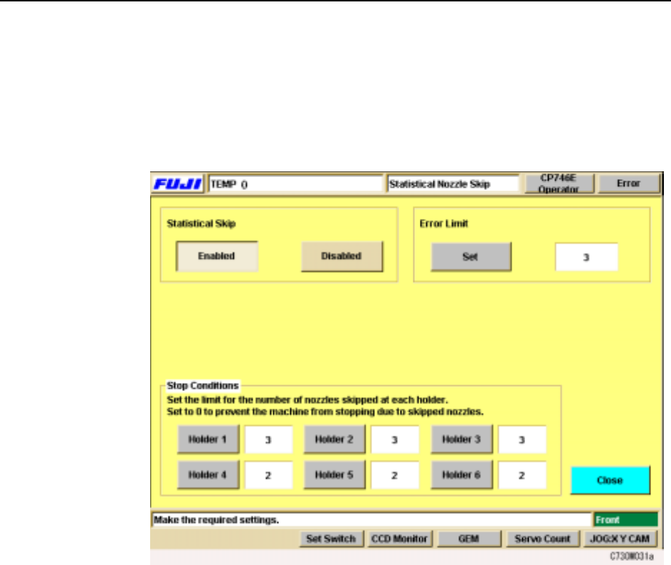 2 At the [Statistical Nozzle Skip] settings screen, press [On] to enable the statisti-