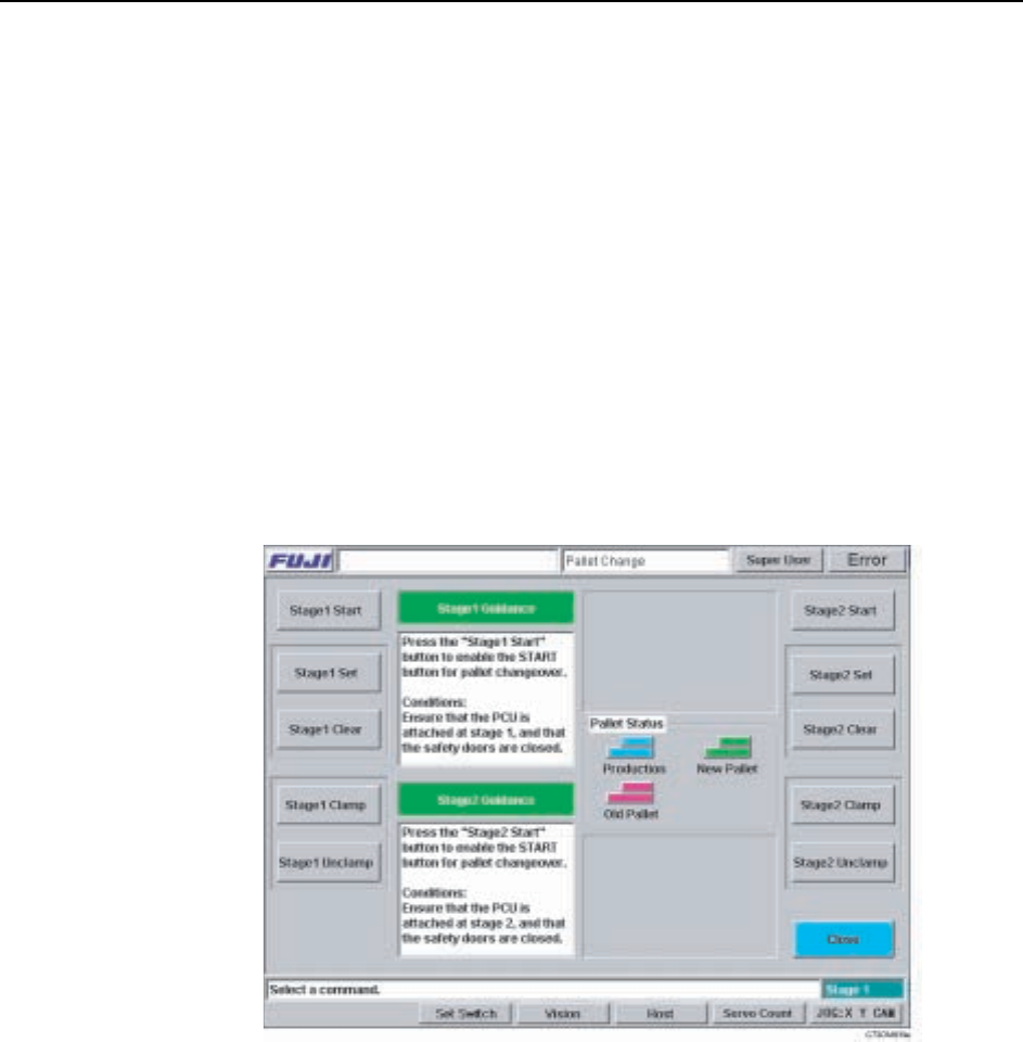 1 At the [Main] screen, press [Change Pallet] to display the [Pallet Change]