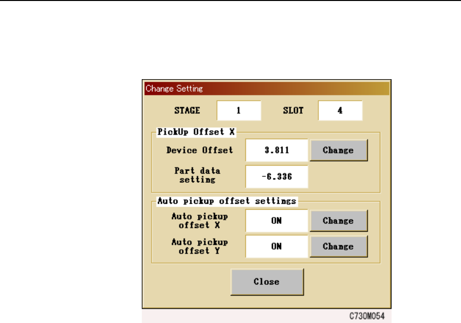 abled, press the [Change] button next to the [Auto pick up offset X] or [Auto pick