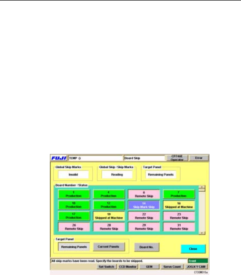 1 Press [Board Skip] at the [Main] screen. The [Board Skip] screen displays.