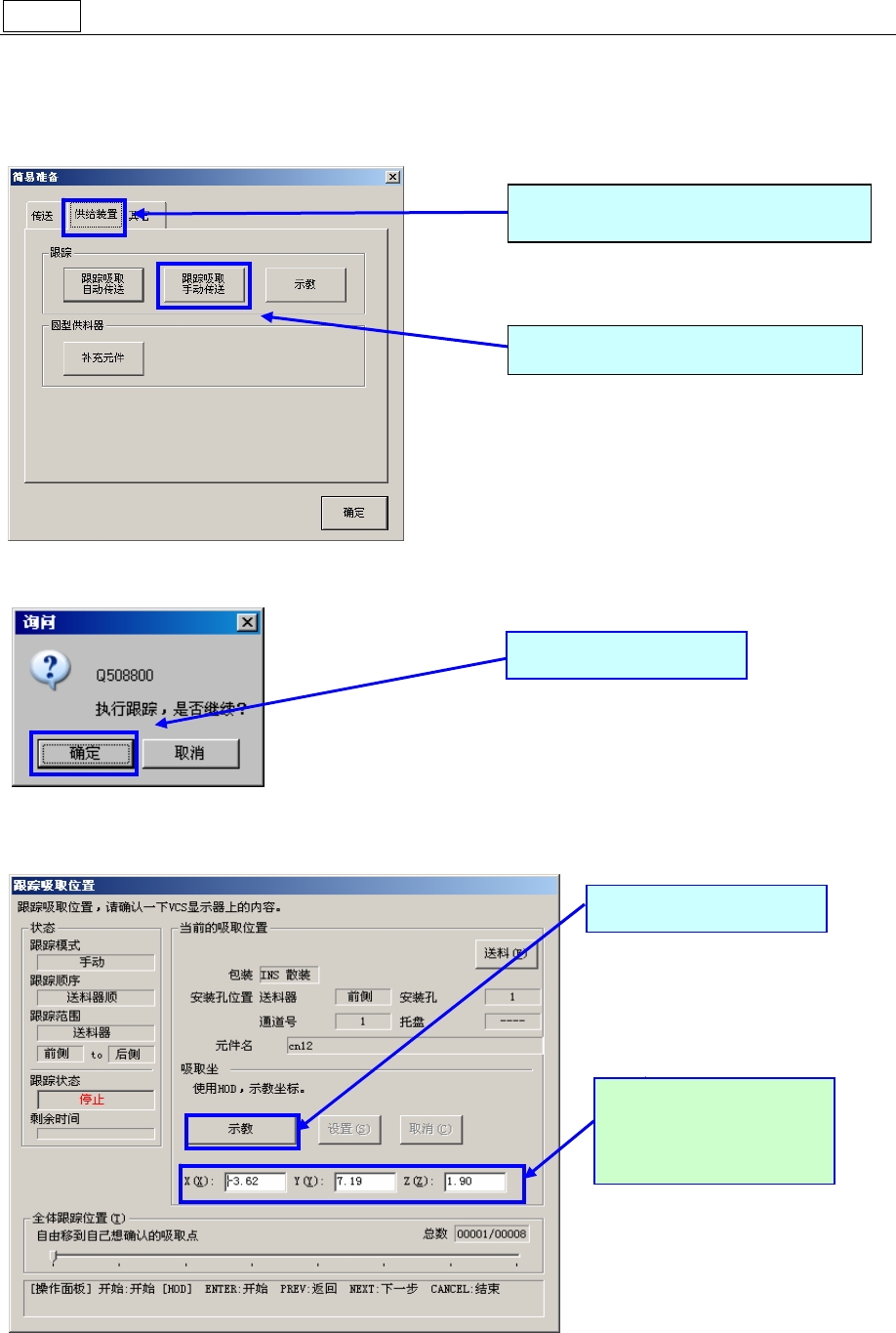 ② 选择「供给位置」,进行 X,Y(吸取坐标)、Z(吸取高度)的跟踪。