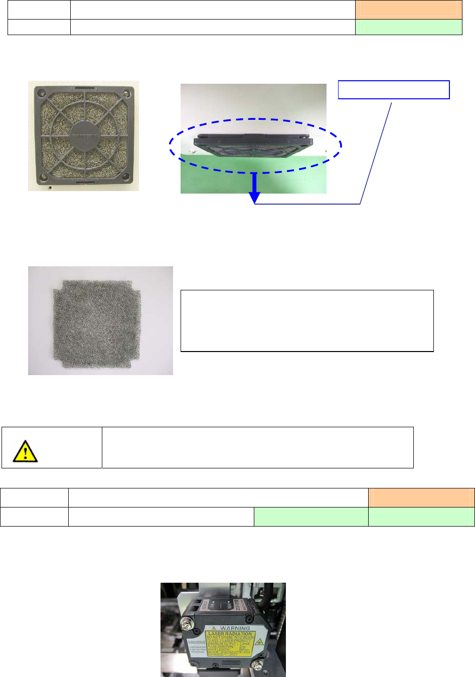 操作手册 3-27 (1) 拆下风扇马达的过滤器。 把黑色树脂部分向身前方向拉,即可拆下。 风扇马达 机器侧面 (2) 用吸尘器吸过滤器的灰尘。 风扇过滤器 (3) 把过滤器装回去。请确认风扇运转是否正常。 因风扇高速旋转, 在接通电源的状态下进行作业有危险。 要进行作 业时,请务必切断电源。 1)如果传感器窗上附着有大量的垃圾或灰尘,请使用吹风机等吹掉。请避免通过呼气吹掉脏污。 2)少量的垃圾和灰尘请使用柔软的布(眼镜布 等)沾上少量…