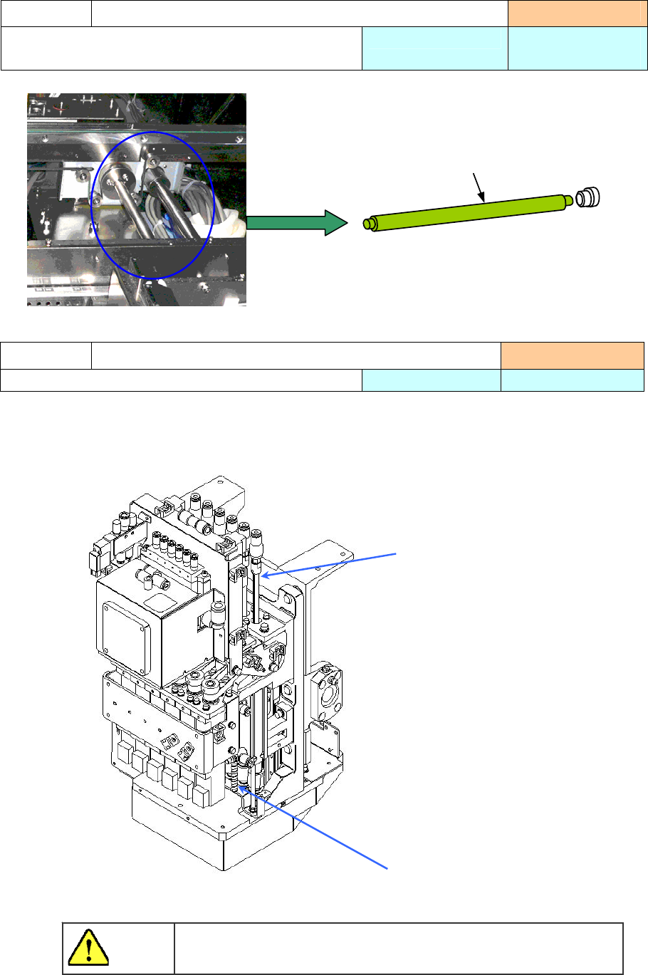 操作手册 3-30 ・ Y 轴滚珠丝杠防护罩的拆卸和安装 拆卸 1. 将 X 轴移动到比传送部更后侧。 2. 松开②的螺钉,取下③的螺钉。 3. 拆下①的防护罩。 安装 1.以与拆卸相反的操作步骤进行安装。 2.安装时, ④ 请检查滚珠丝杠螺母与盖子,不要接触。 4