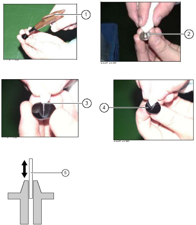 1. 用气枪 1 吹掉吸嘴空气路径上的灰尘。 * 请对着吸嘴尖端向里吹气。这时,请注意勿让 气枪碰到吸嘴尖端。否则,吸嘴尖端会发生破 损、变形。 2. 用棉纱布擦拭吸嘴锥形面 2 。 * 请使用不易起毛的棉纱布等进行擦拭。 3. 用棉纱布擦拭吸嘴尖端部 3 ( 吸嘴部位 ) 。 4. 用棉纱布擦拭吸嘴反射板 4 。 * 这时绝对不能使用溶剂 ( 比如酒精等 ) 。 否则,吸嘴反射板会发生变色、变形、 连结断裂。 5. 用清扫杆 5 清扫…