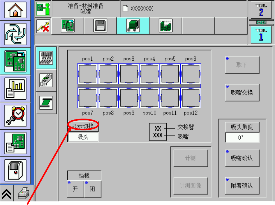 按[显示切换]可将显示内容在‘吸头’/ ‘交换器’之间进行切换。• 显示吸嘴号码/交换器号码。