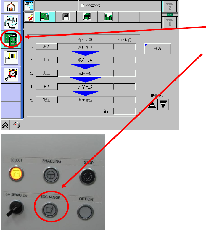 • 台车交换“EXCHANGE”键灯将会亮灯。