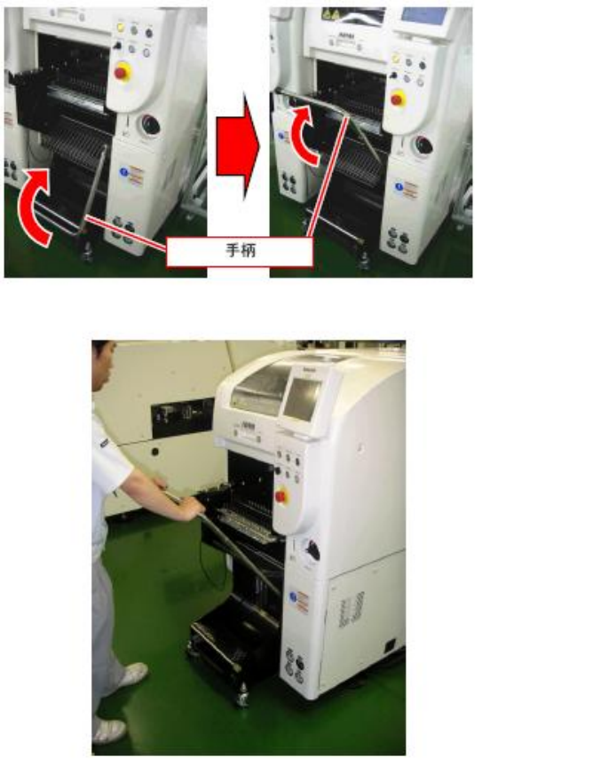 • 提起交换台车的手柄,拉出