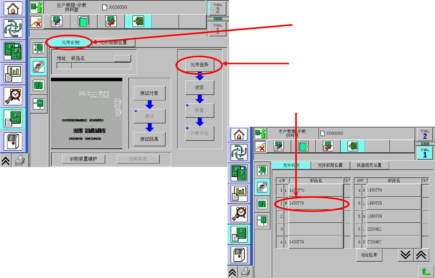 9, 芯片识别。 1. 按[元件识别]。 2. 按 [ 元件选择 ] 。 3. 选择要识别的元件。