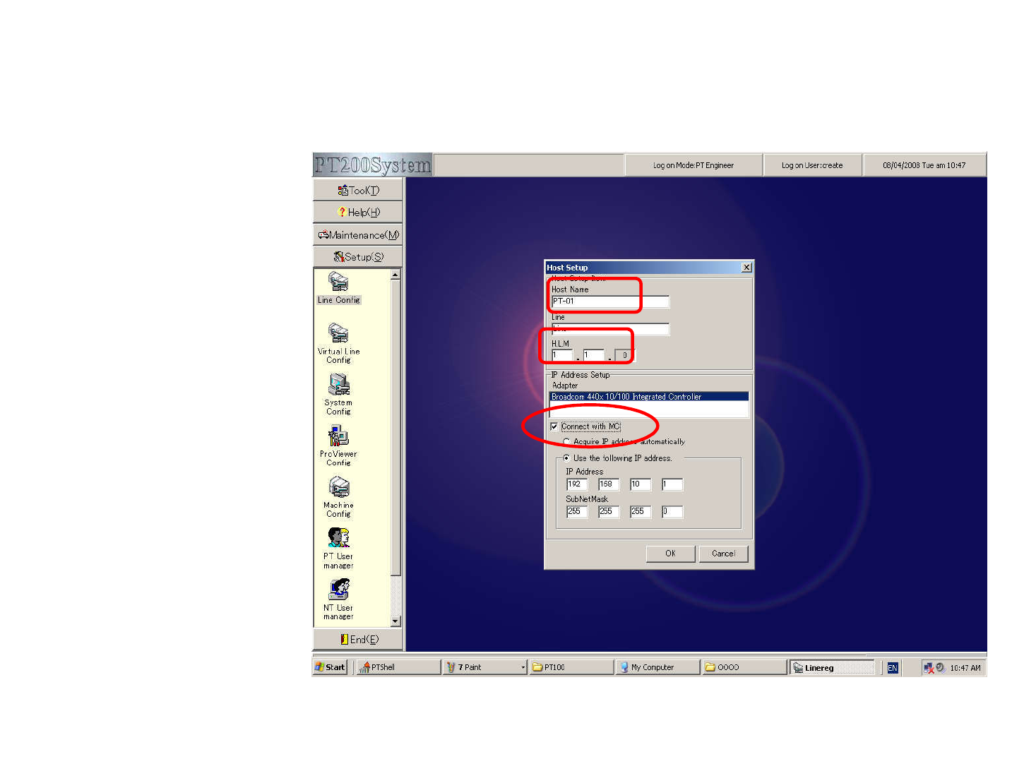 点击PT200菜单中的setup,打开LineConfig,进行如下设置。
