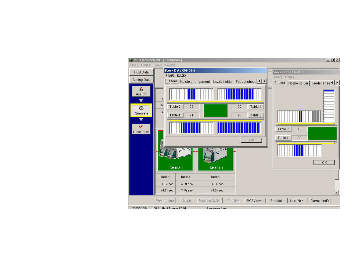 显示优化后的贴装时间 显示优化后的 tur n 数 各 stage 所贴装的元件数量