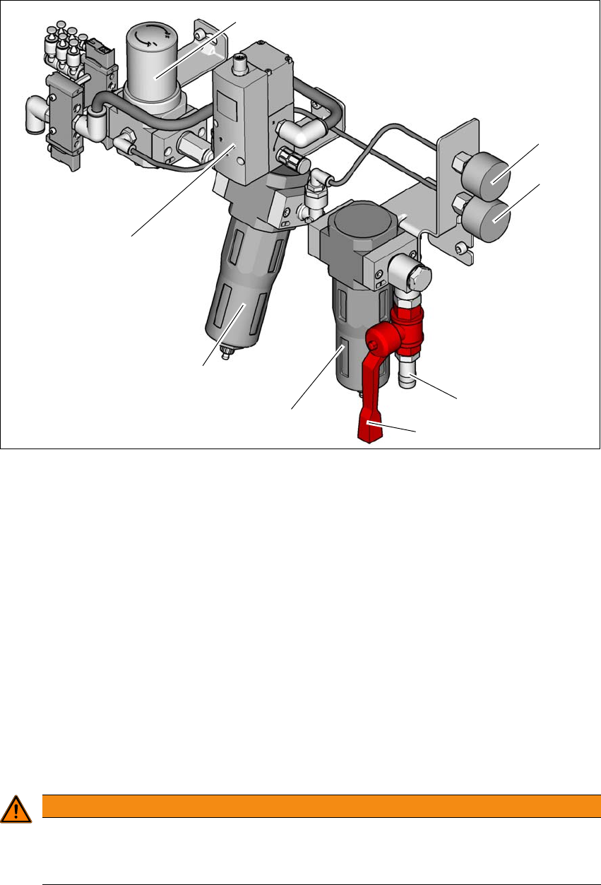 cering angiver pos. 1 på fig. 2.9 - 1, side 93). Trykluftforsyning til automatern kan afbrydes på stop