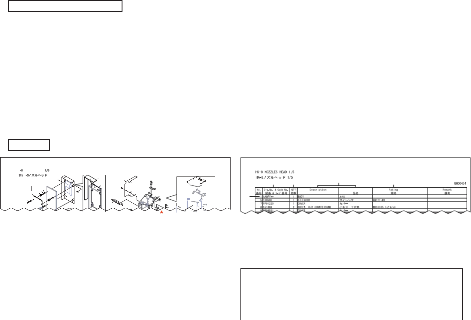 订货的时候,请确认机器名、串行号NO,参照本零部件一览表后,正确的提出图号、代码号、个数、部件名称以及规格。