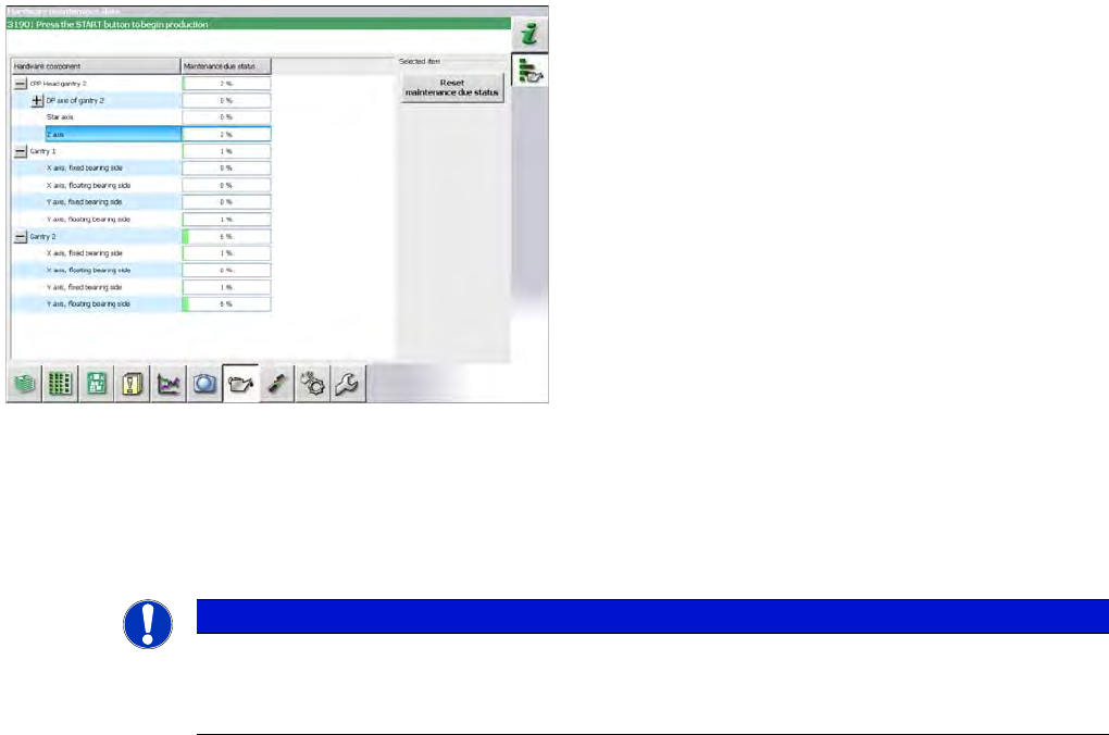 The maintenance status is calculated from the placement cycles, temperature and operating hours. The