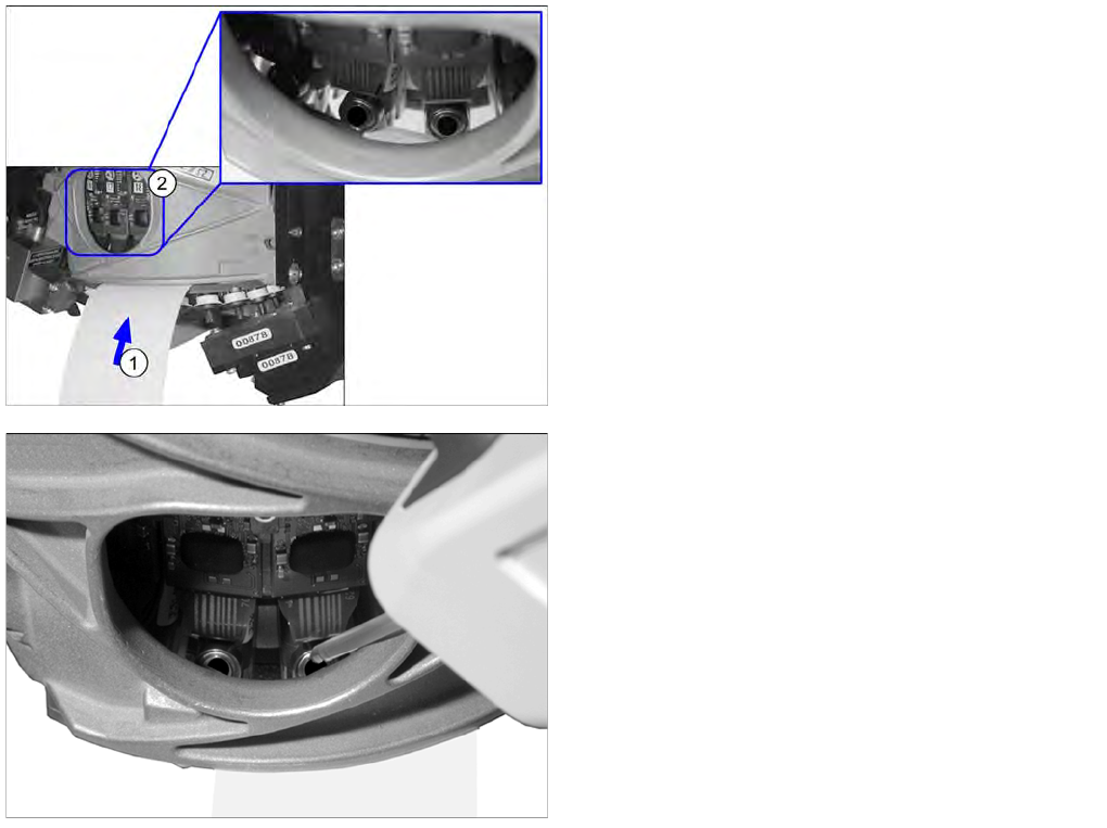 ► Carefully push a strip of blotting paper (1) under the