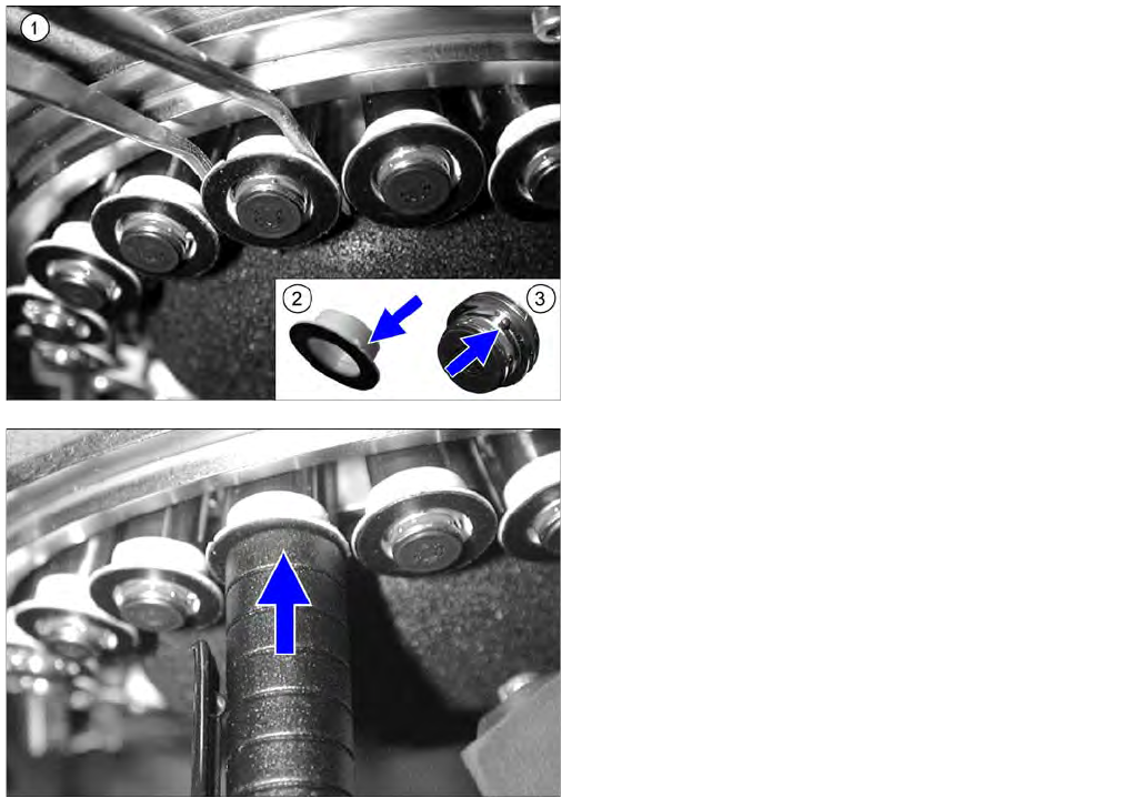 ► Check the hold circuit (2) and the seal (3) for dirt and