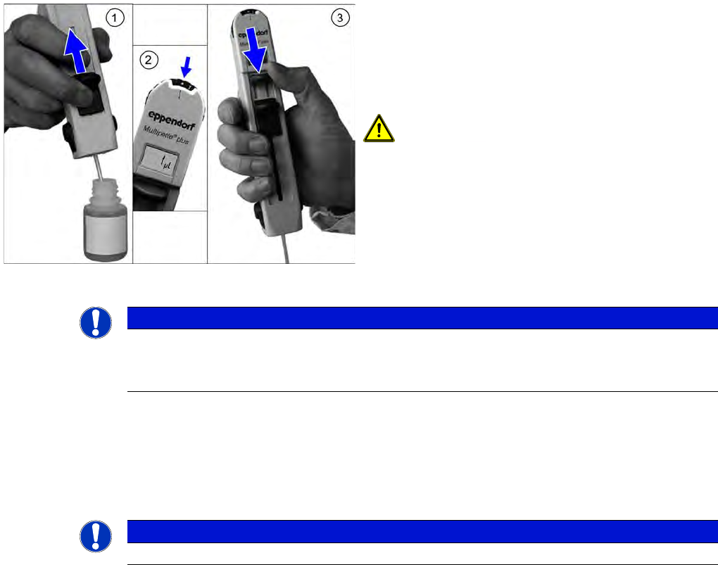 ► (2) Set the multipette gauge to the dot on the left, next to the "1". The display should now show "1 µl".