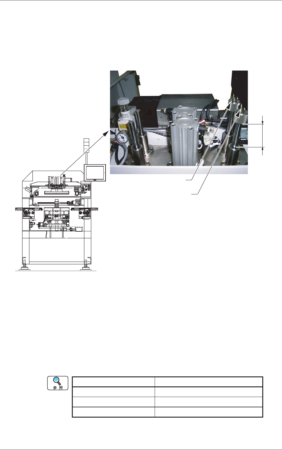1 - 39 Tg 1300 -ID-MT (3) “装置メンテナンス” メニューの “手動操作” サブメニューの “印 刷部”タブシートから操作して印刷位置にある基板にスキージ を押付けます。 上表を参考にして L 寸法と押込み量の関係を確認してください。 4.1 消耗部品の交換と調整 0607 - 002