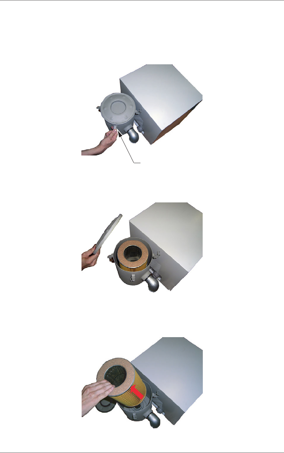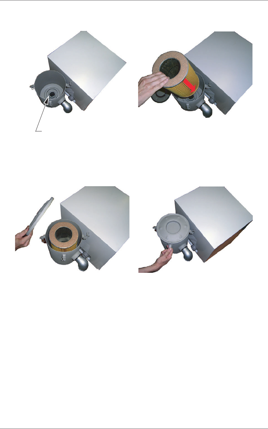 (4) フィルタカバー奥のフランジにフィルタのセンタ穴が入るよう