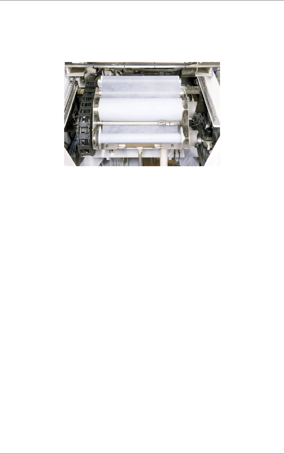 (15) 巻取り側ローラを手で回転させて巻取り側ローラにペーパーを