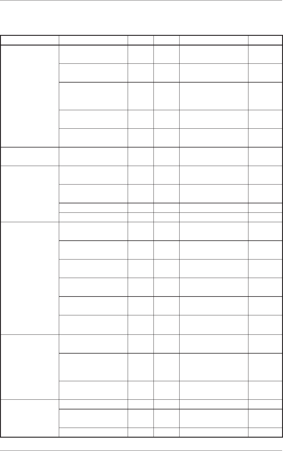 1 - 8 Tg 1300 -ID-MT 0607 - 002 2.2 毎週メンテナンス 2.2 毎週メンテナンス Table 4A7 対象ユニット 点検、清掃、給油か所 作業 グリス 作業用具 チェック 3.3.1 エア源 ドレーン 清掃 - 容器など 3.3.4 基板認識部 基板反り上押え ( ローラ外周 ) 清掃 - ウエス 基板ストッパ 清掃 - ウエス 3.3.6 基板チャック部 バックアップテーブル の上面およびピン穴部 清…