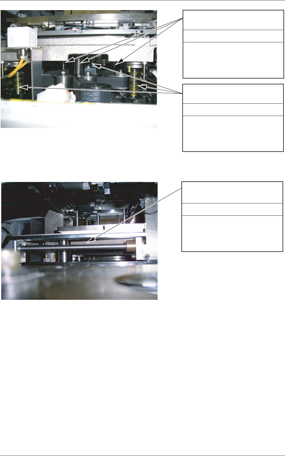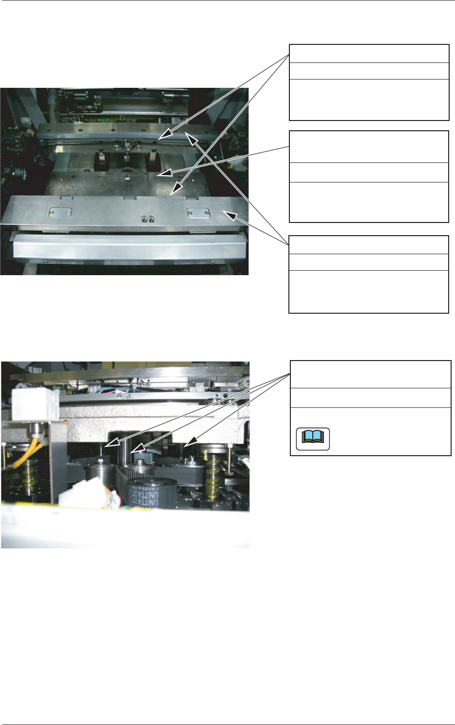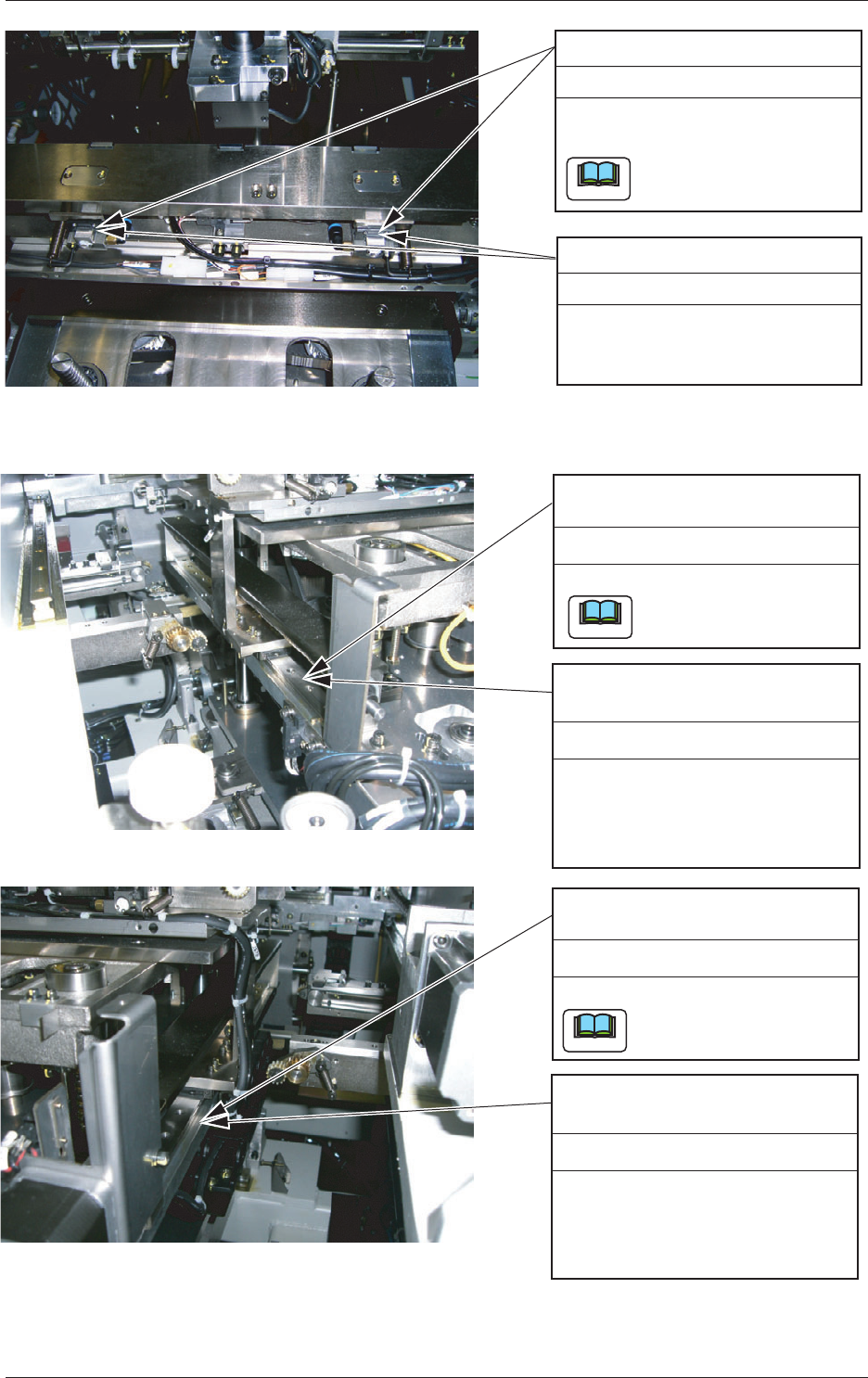 1 - 27 Tg 1300 -ID-MT 0607 - 002 バックアップテーブルZ軸 ボールネジ (1) バックアップテーブル Z軸を上昇させます。 (2) ハケまたはヘラでグリー スを塗布します。 6か月ごと 給油 (1) バックアップテーブル Z軸を上昇させます。 (2) ハケまたはヘラでグリー スを塗布します。 6か月ごと 給油 バックアップテーブルZ軸 ガイドブッシュ Fig. 4A23 シュート幅変更用台形ネジ (左側)…