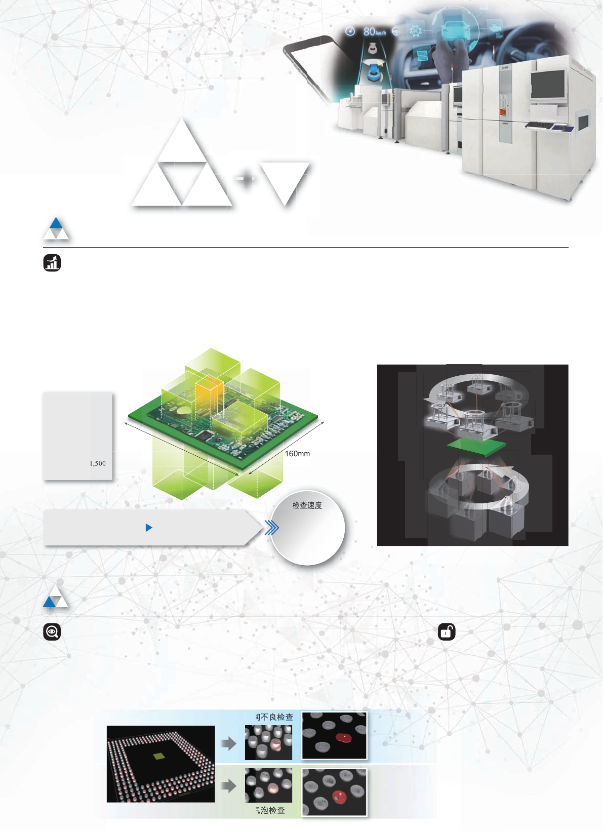 通过对焊锡形状等实装状态的量化检查,实现符合行业规格的品质检查,使漏检风险达到最