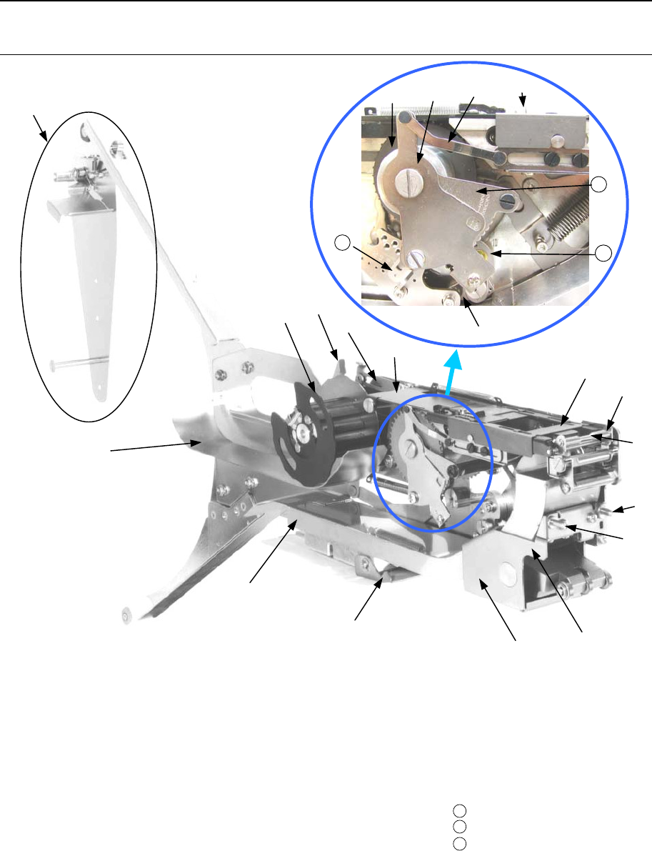 1) 拧松图 2-2-1、图 2-2-2 的调节板挡块定位螺丝、调节板杆定位螺丝,拆下挡块定位螺丝。