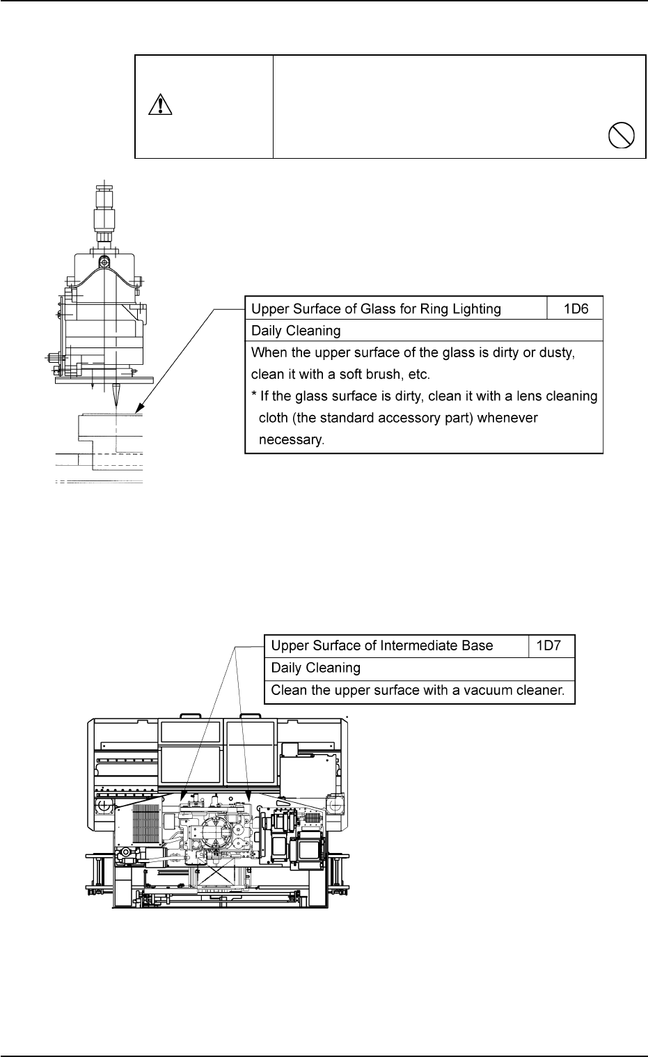 (4) Component Recognition Section (5) Main Section of Machine Intermediate Base/Component Receiving Box Fig. 4A14 1.3 Maintenance Spots 021 1-004 1-14 AGS01ETRP Use a suction force (a vacuum cleaner) for cleaning. Do not…