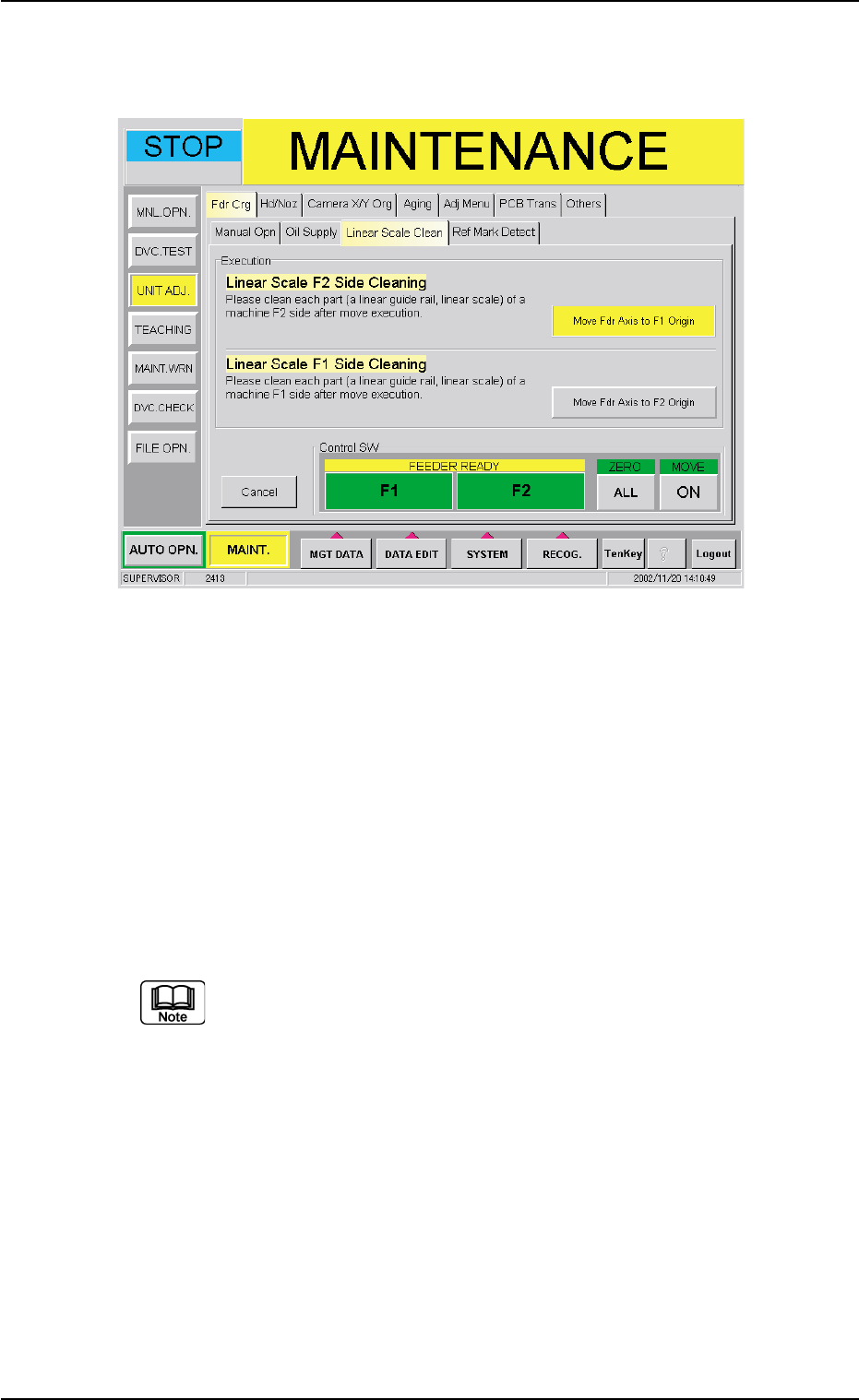 (2) When the [Start Linear Scale Cleaning] button is pressed in the "Linear