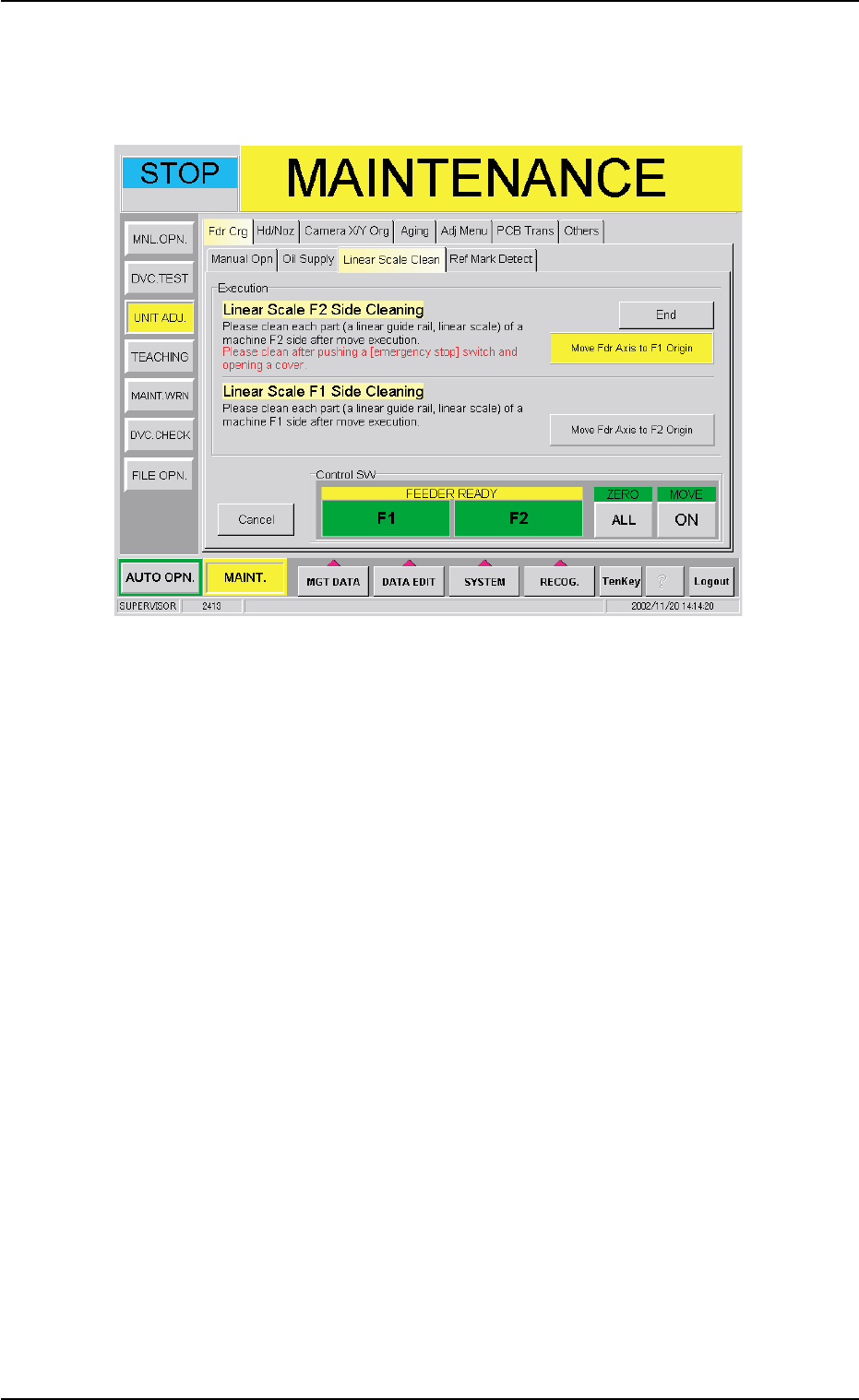 (2) When the [Start Linear Scale Cleaning] button is pressed in the "Linear