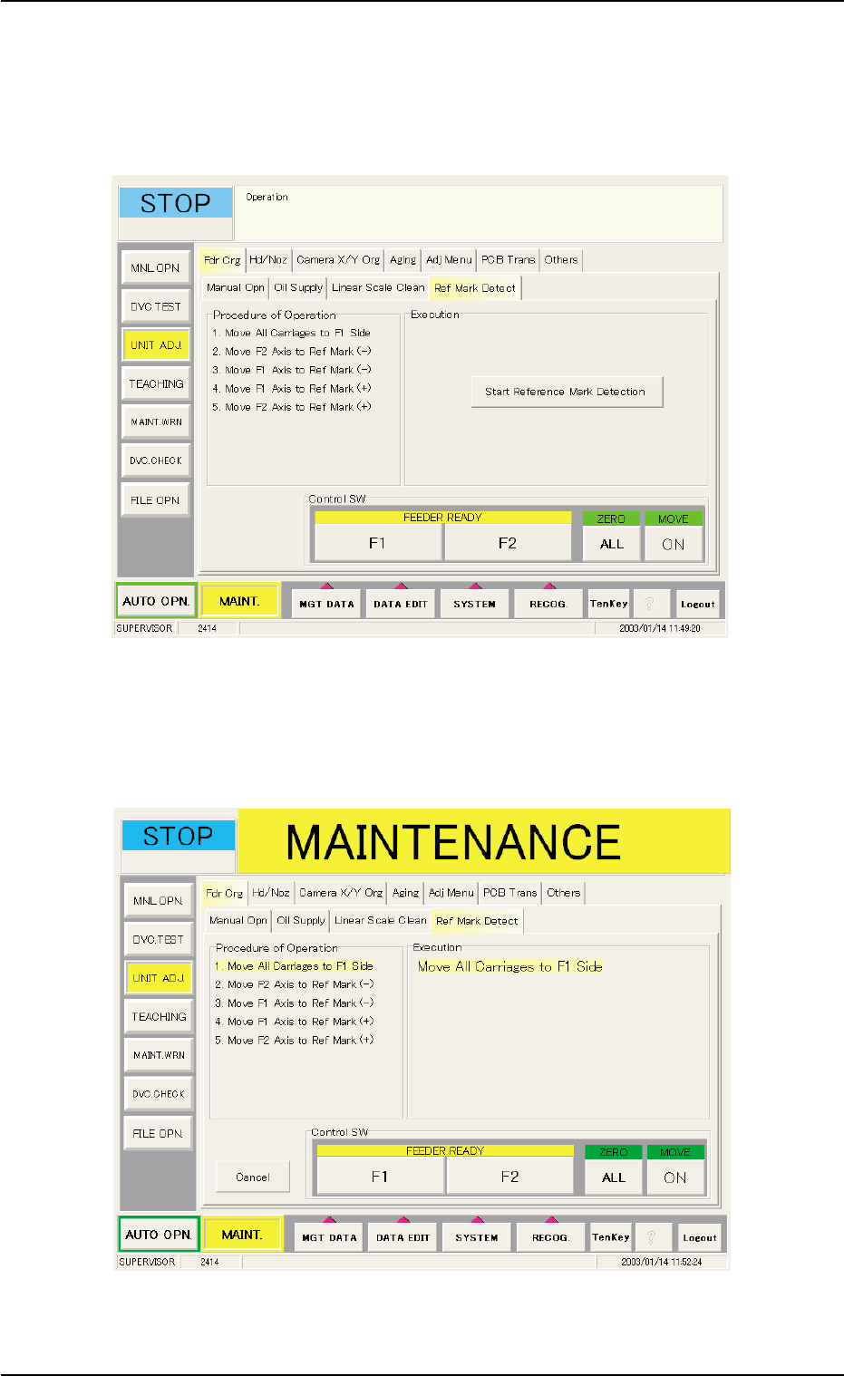 (1) When the "Ref Mark Detect" tab is pressed in the "Feeder Crg." tab