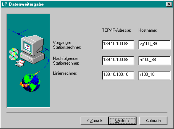 der vorangegangenen Station und die der nachfolgenden Station eingeben.
