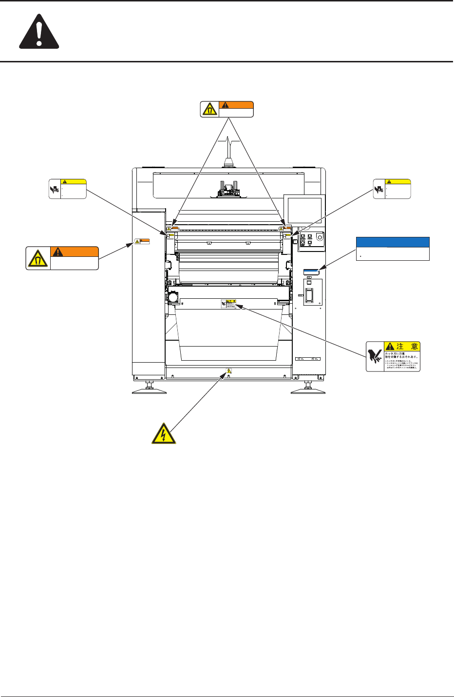 警告ラベルは、危険か所または注意か所に貼付けてあります。